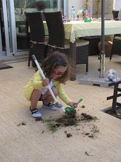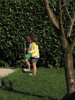 Ao final do dia quando chegamos a casa, ainda aproveitamos o calorzinho no nosso jardim, brincamos, limpamos e corremos no jardim. Que maravilha. Por isso é que a mamã gosta tanto do bom tempo.