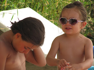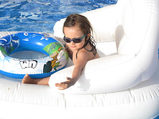 Vamos todos os dias para a praia e para a piscina juntos. No sábado estivemos todos a festejar o aniversário do vovô Mi e graças à boia da Matilde já sabes nadar. Sentias-te muito presa com o colete. Agora até queres nadar sozinha na piscina e vais para a parte funda no entanto sempre com a mamã ao teu lado. Já estás tão confiante que até deste uma cambalhota e deste um mergulho. Ainda bem que estávamos muitos à tua volta. Durante uns minutos não quiseste voltar à piscina, mas rapidamente perdeste o medo.